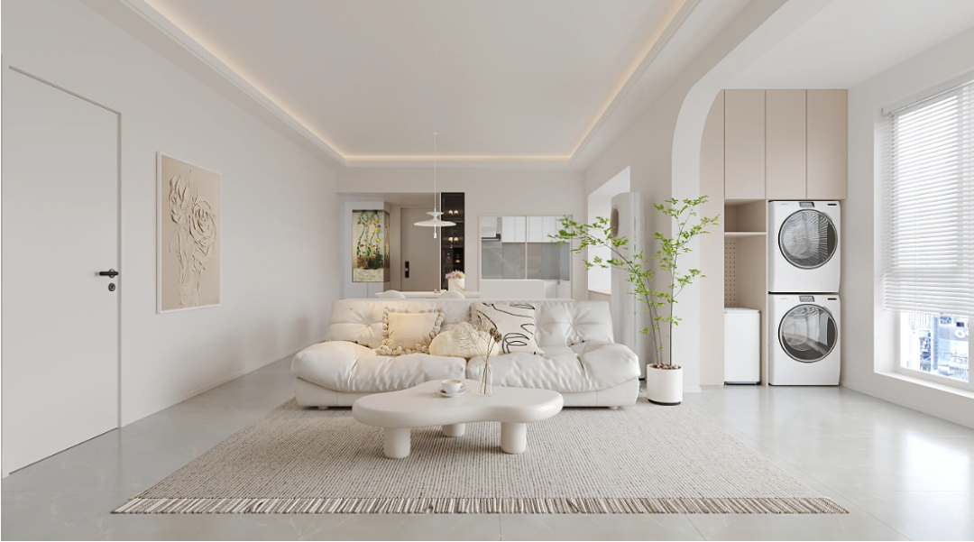 奶油风它既有现代简约的高级感,又有法式浪漫的空灵感,每一平方米都治愈人心。整体空间采用低饱和的色彩,让空间呈现被细腻奶油包裹的温柔氛围,纯洁柔美。